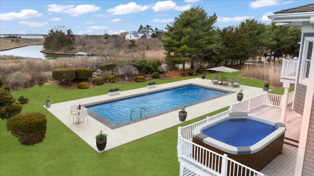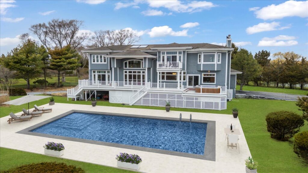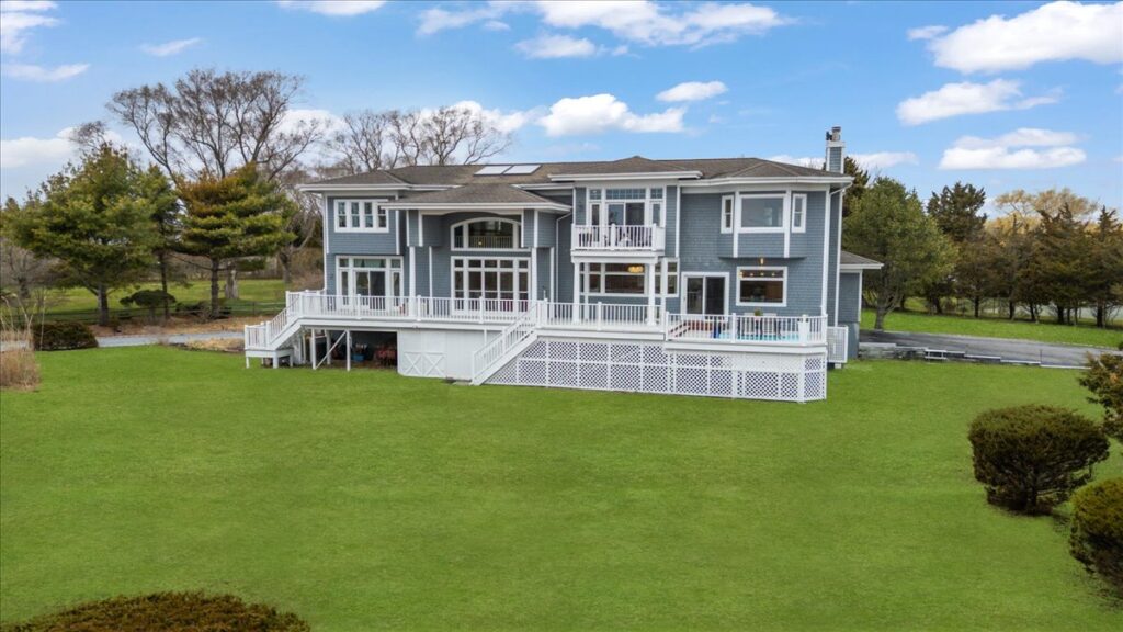 A private 5-bedroom, 3.5-bath Hamptons home set on 1.05 acres with access to Tanners Neck Creek and sweeping water views of Moriches Bay. The 3,659 sq ft residence features a renovated chef’s kitchen, light-filled living and dining areas, expansive deck, and flexible first-floor guest spaces. Upstairs includes a spacious primary suite with private deck, additional bedrooms, and loft. Highlights include a two-car garage, solar hot water system, landscaped grounds with a gardener’s cottage, and close proximity to Westhampton Beach, dining, shopping, arts, and ocean beaches.